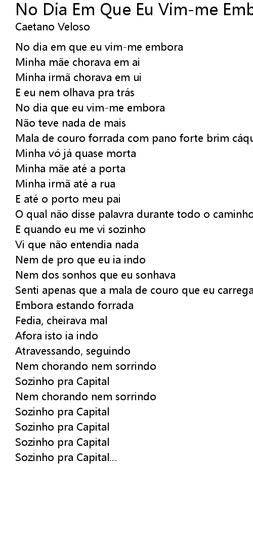 | Song | No Dia Em Que Eu Vim-me Embora |