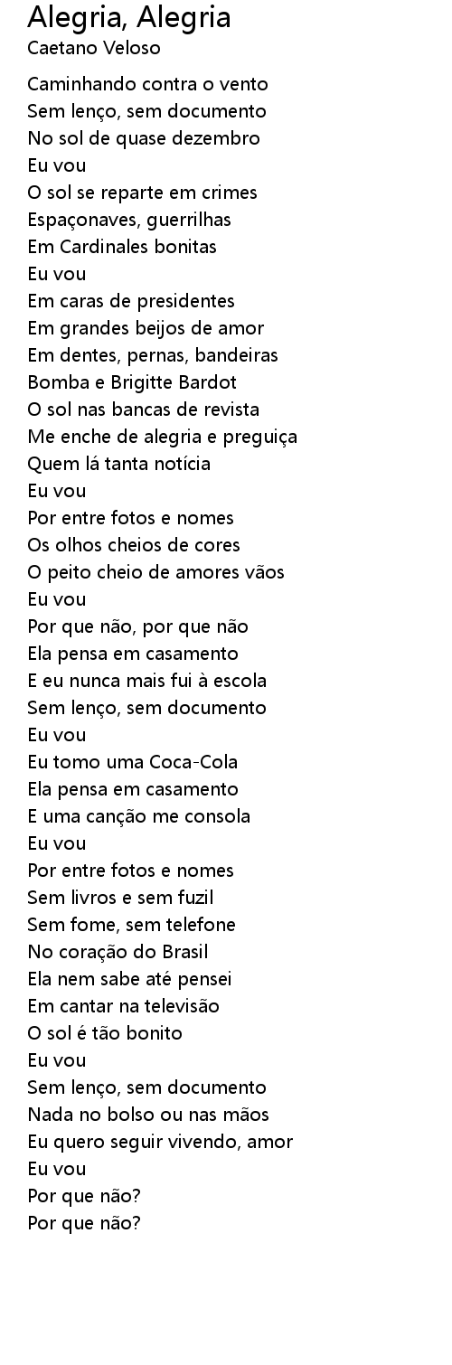 | Song | Alegria, Alegria |