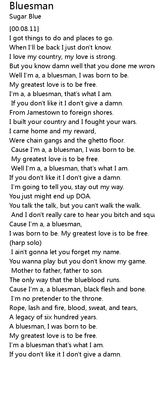 Well I'm a, a bluesman, I was born to be. |