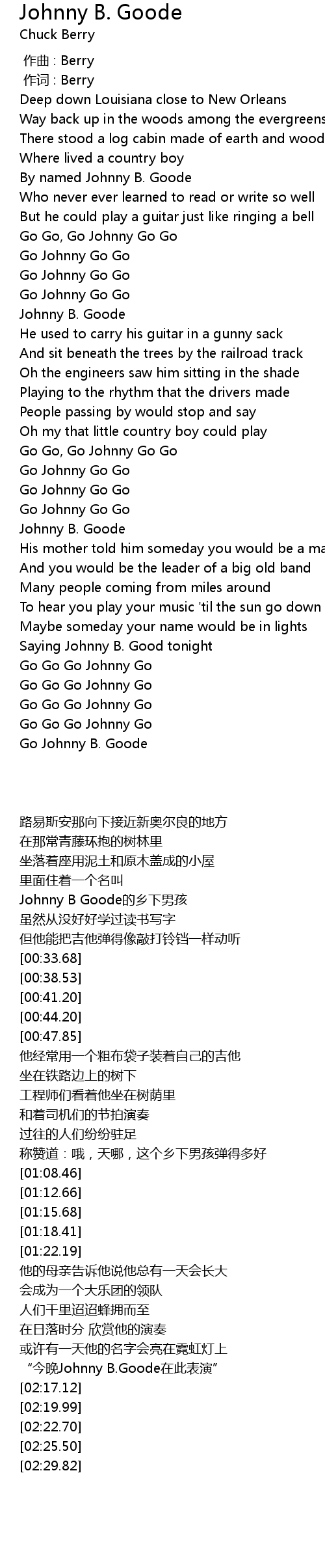 | [02:29.82] | Go Johnny B. Goode |