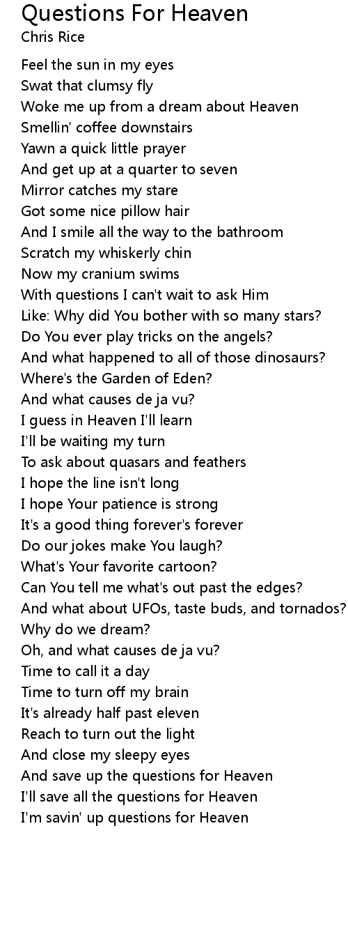And save up the questions for Heaven |