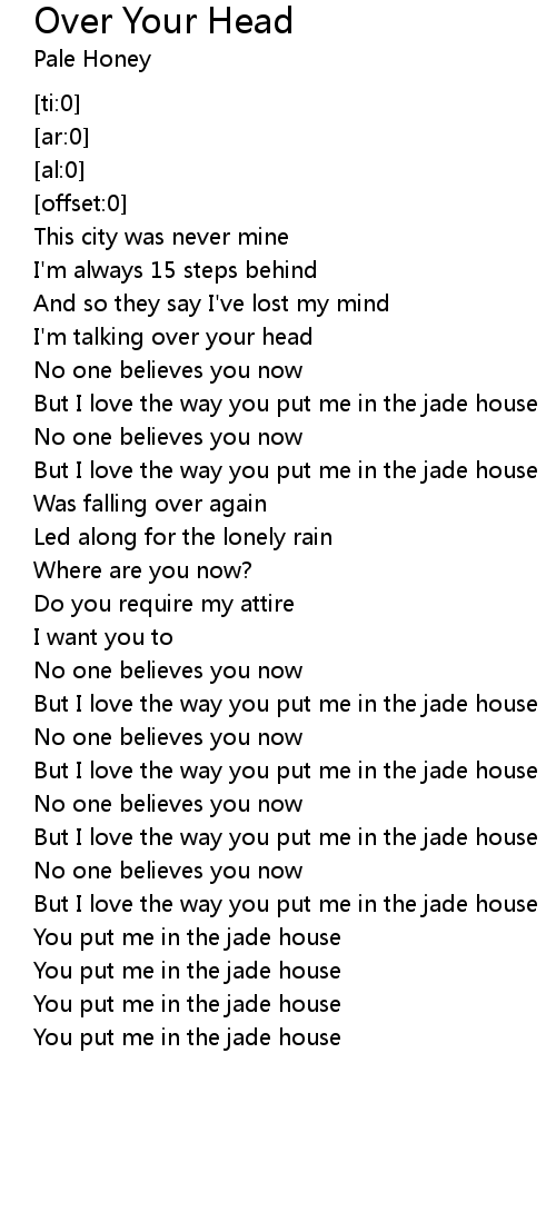 You put me in the jade house |