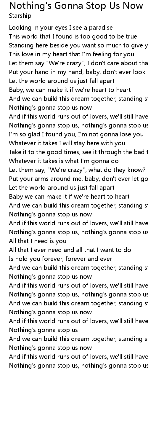 Nothing's gonna stop us, nothing's gonna stop us now |