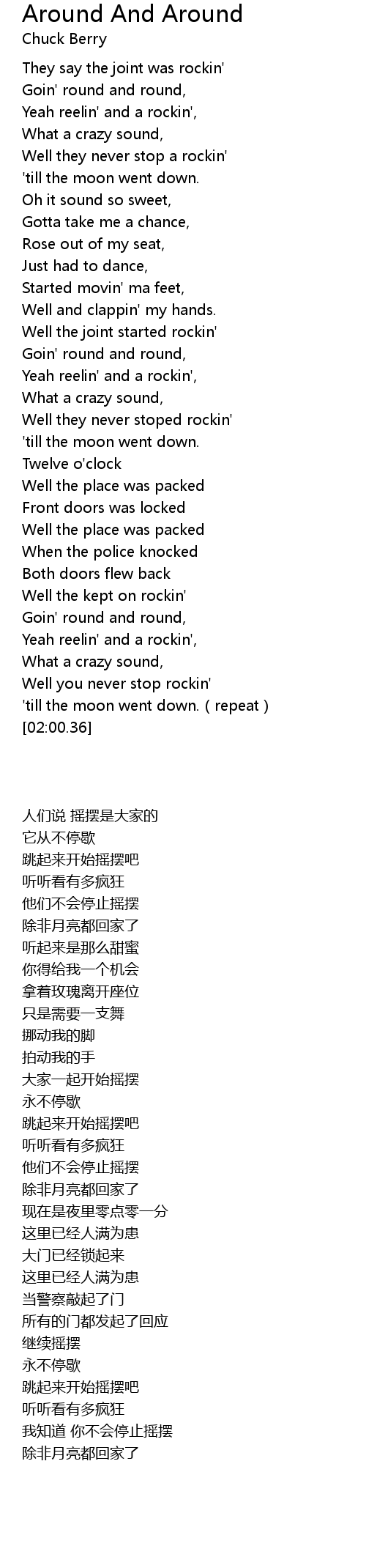 | [00:35.51] | Well the joint started rockin' |