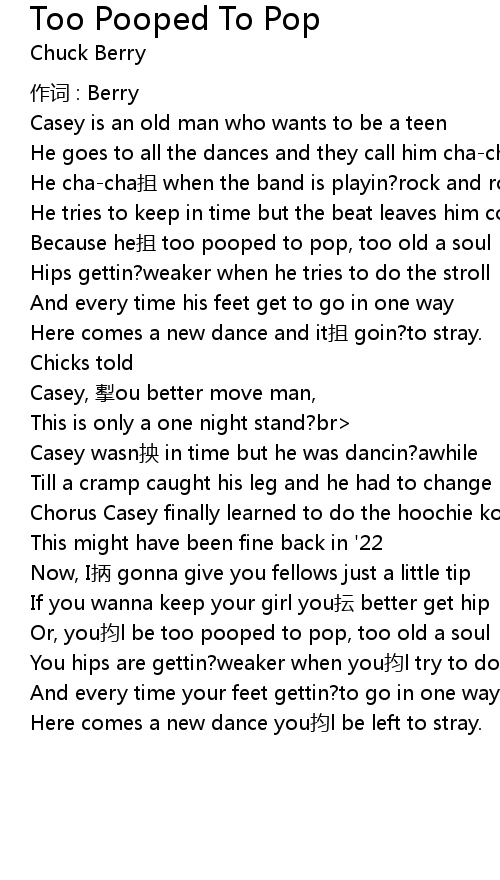 | Or, you yun l be too pooped to pop, too old a soul | |