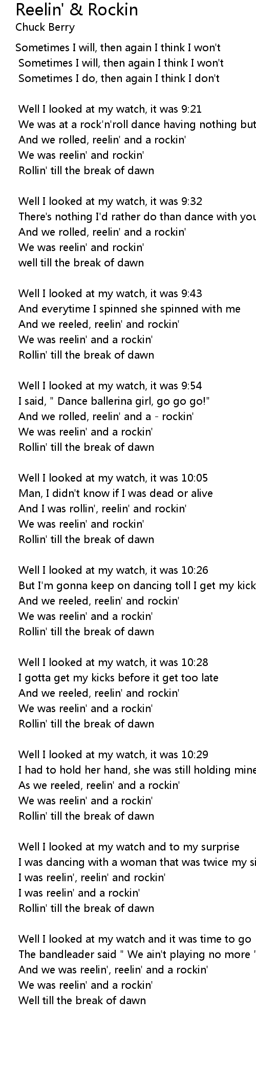 Reelin' & Rockin Lyrics
