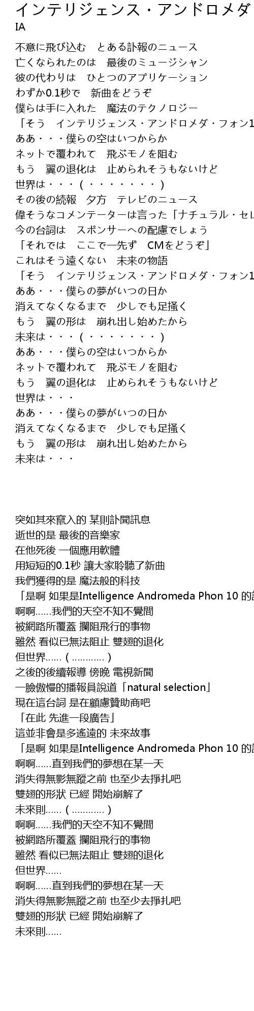 | [00:56.09] | 「そう インテリジェンス・アンドロメダ・フォン10 ならね」 |