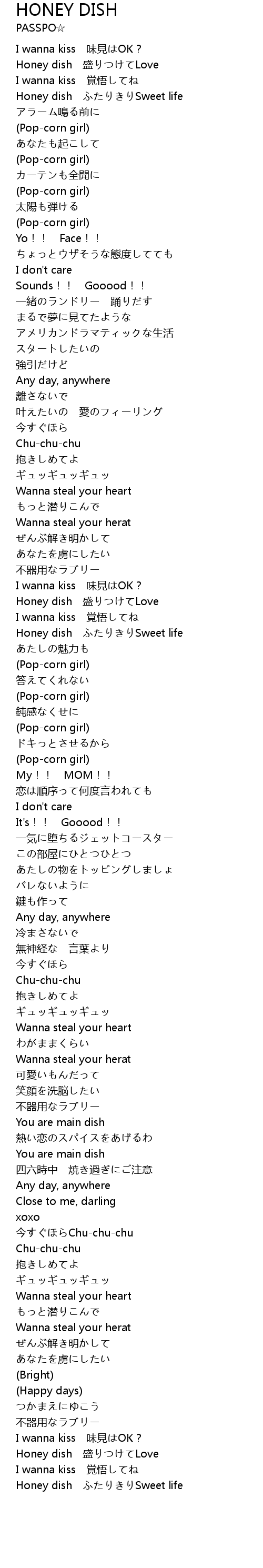 | [00:08.92] | Honey dish ふたりきりSweet life |