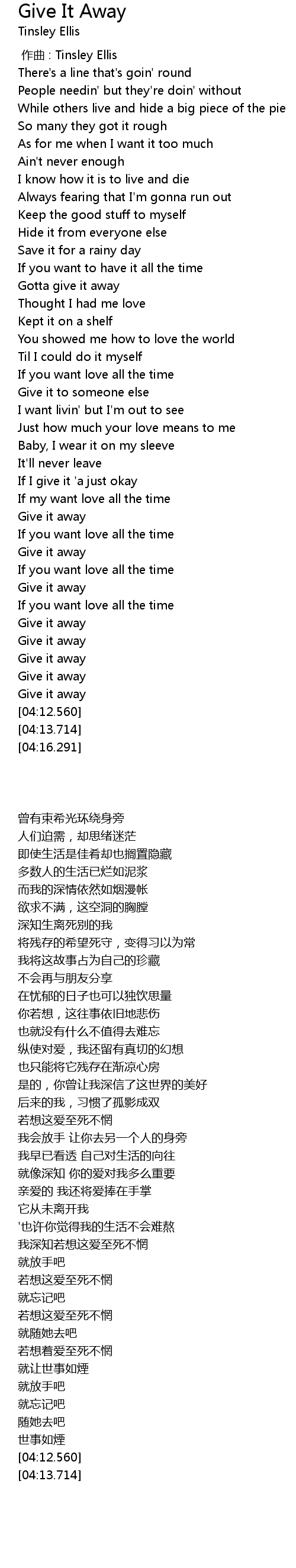 | [04:09.110] | Give it away |