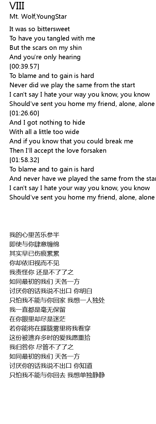 | [02:35.15] | Should've sent you home my friend, alone, alone |