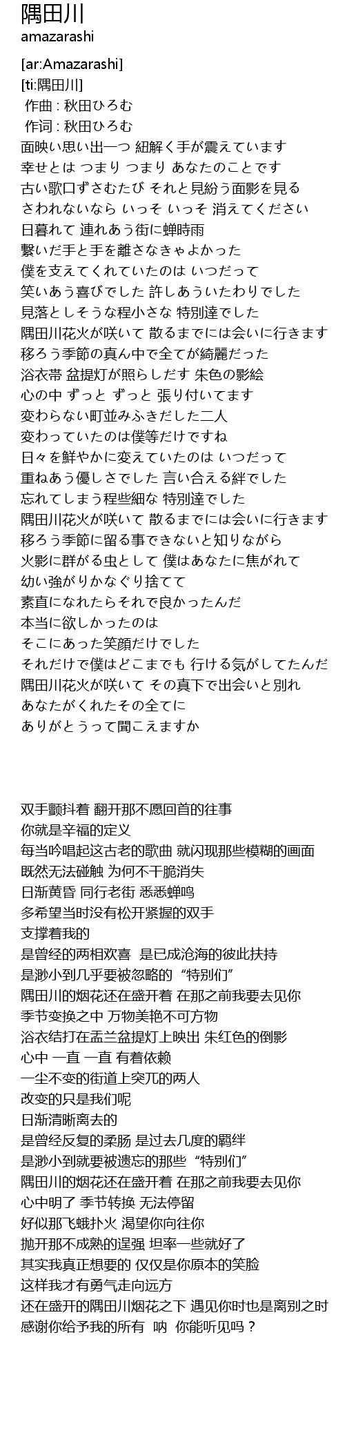 | [05:04.790] | 隅田川花火が咲いて その真下で出会いと別れ |