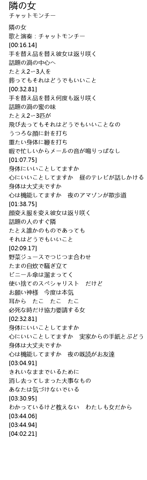 | [00:00.00] | 隣の女 |