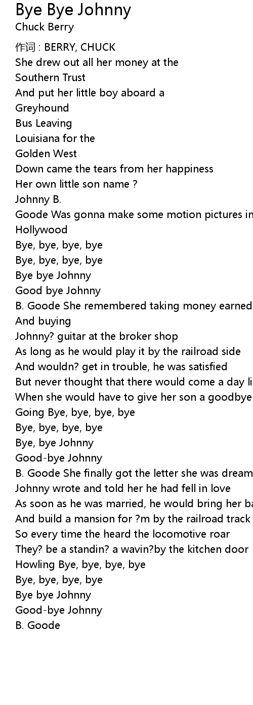 | Song | Bye Bye Johnny |