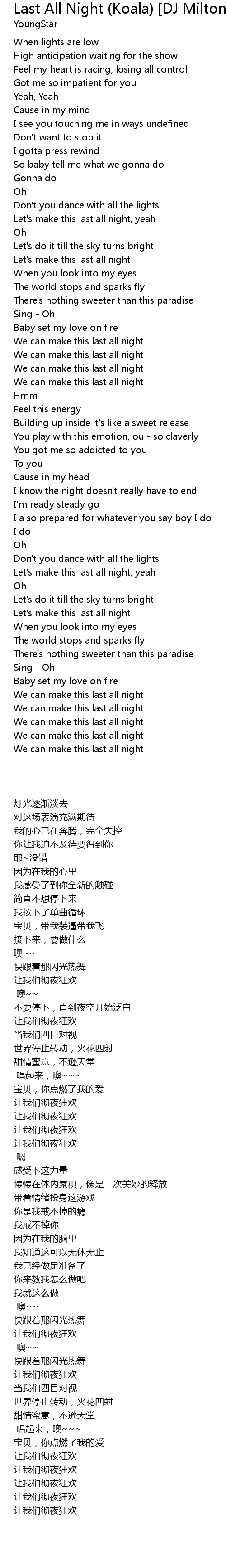 Last All Night (Koala) [DJ Milton Club Mix] Lyrics