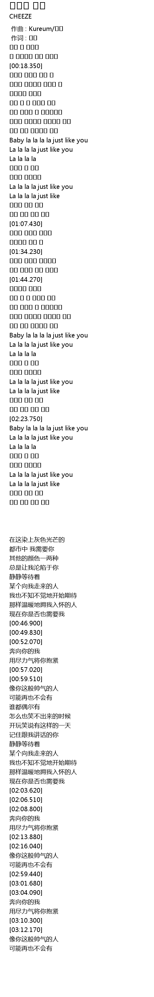 | [02:59.440] | Baby la la la la just like you |