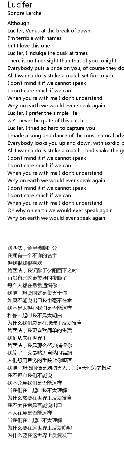 | [00:16.97] | Lucifer, I indulge the dusk at times |