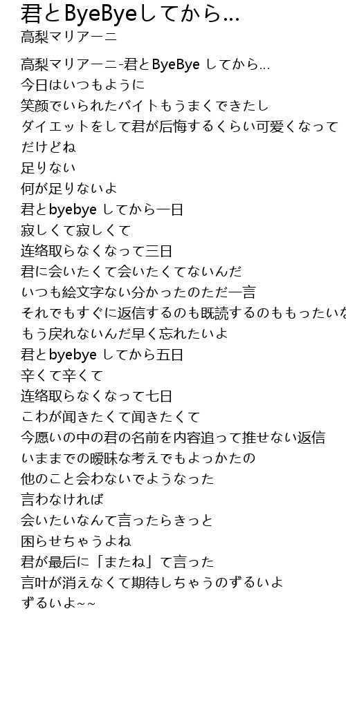 | [00:00.41] | 高梨マリアーニ-君とByeBye してから… |
