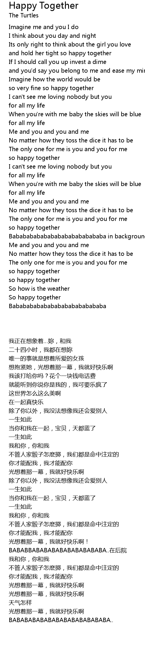 Happy Together Lyrics