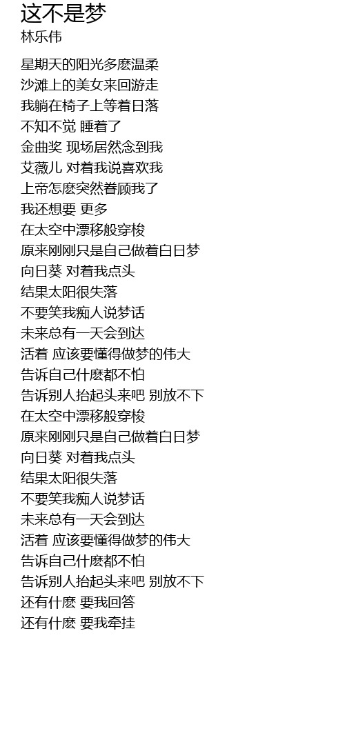 | [01:32.53] | 原来刚刚只是自己做着白日梦 |