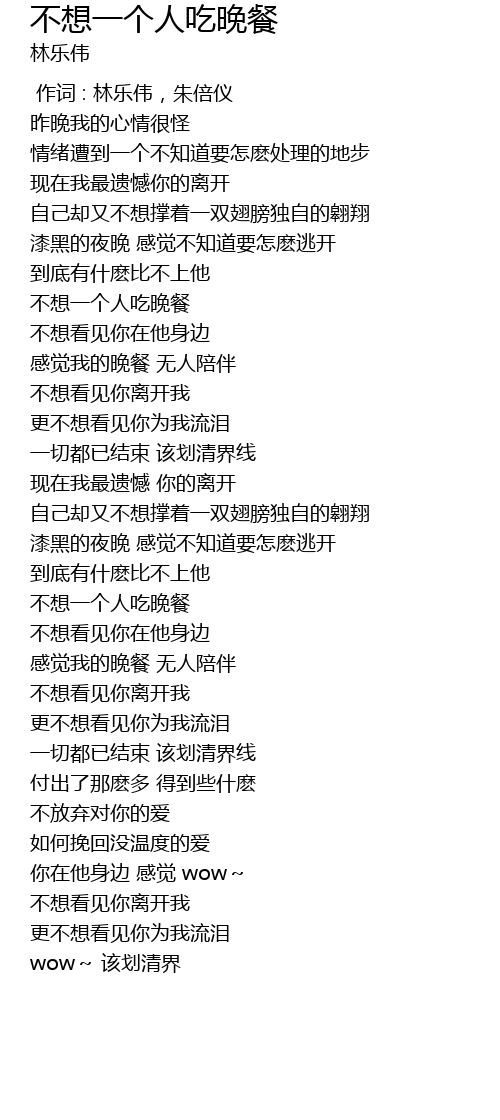 | [01:03.95] | bù xiǎng yí ge rén chī wǎn cān |