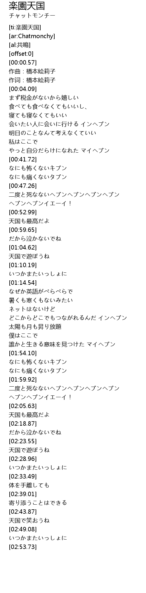 | [02:00.63] | 二度と死なないヘブンヘブンヘブンヘブン |