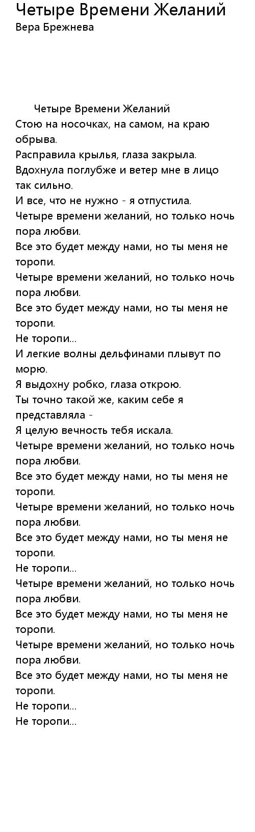 Четыре Времени Желаний  Lyrics