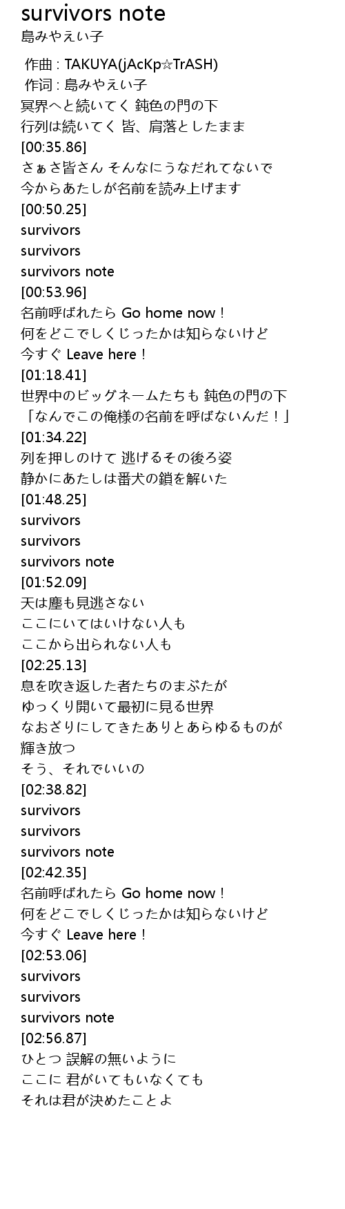 | [00:52.50] | survivors note |