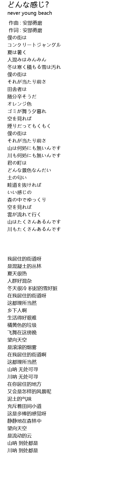作词 : 安部勇磨 |