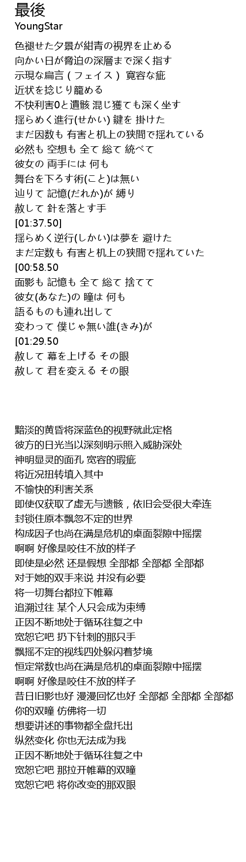 | [01:20.50] | 舞台を下ろす術(こと)は無い |