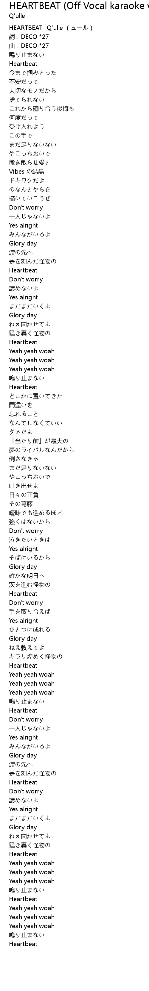 | [00:00.00] | HEARTBEAT -Q'ulle (ュール) |