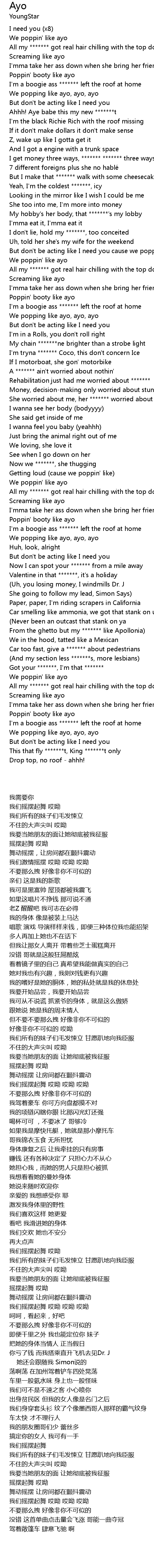 | [00:19.410] | We poppin' like ayo |