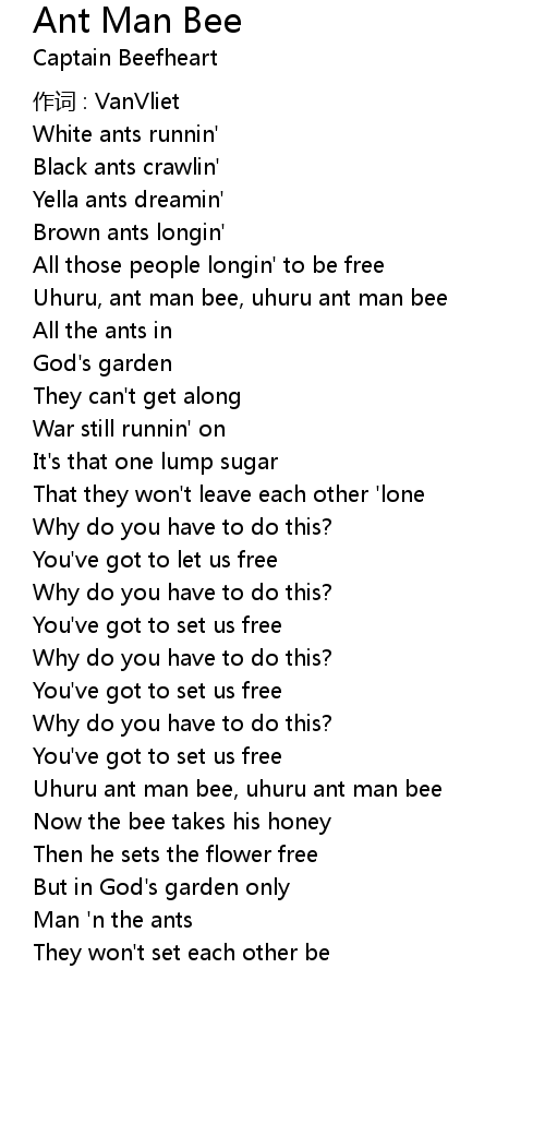 | Uhuru, ant man bee, uhuru ant man bee | |