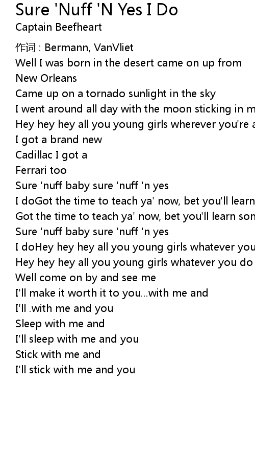 | Sure ' nuff baby sure ' nuff ' n yes | |