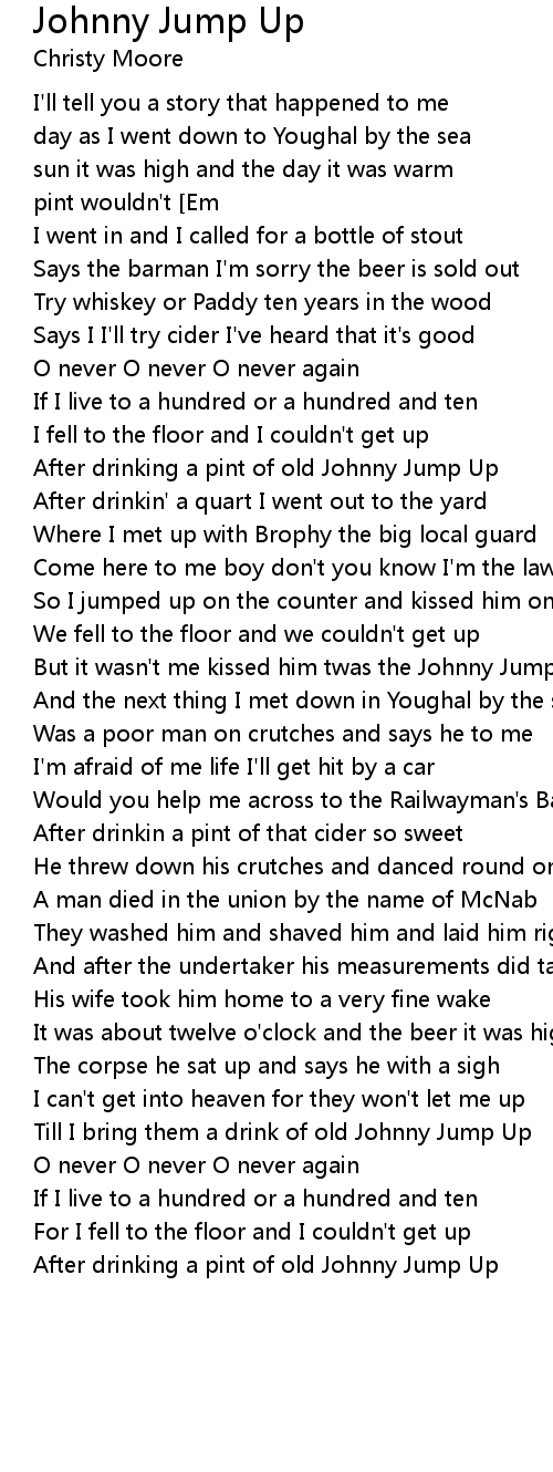 Till I bring them a drink of old Johnny Jump Up |