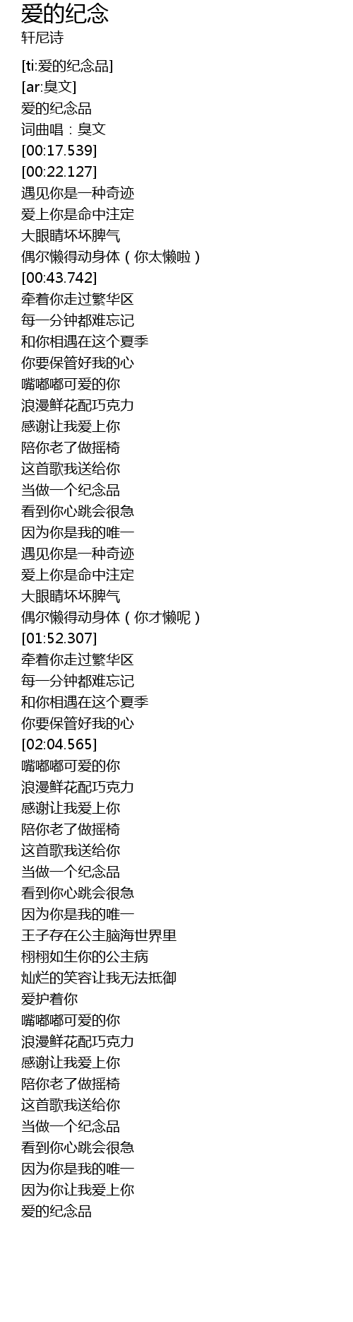| [03:03.879] | dàng zuò yí gè jì niàn pǐn |