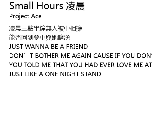 | [01:11.24] | JUST LIKE A ONE NIGHT STAND |