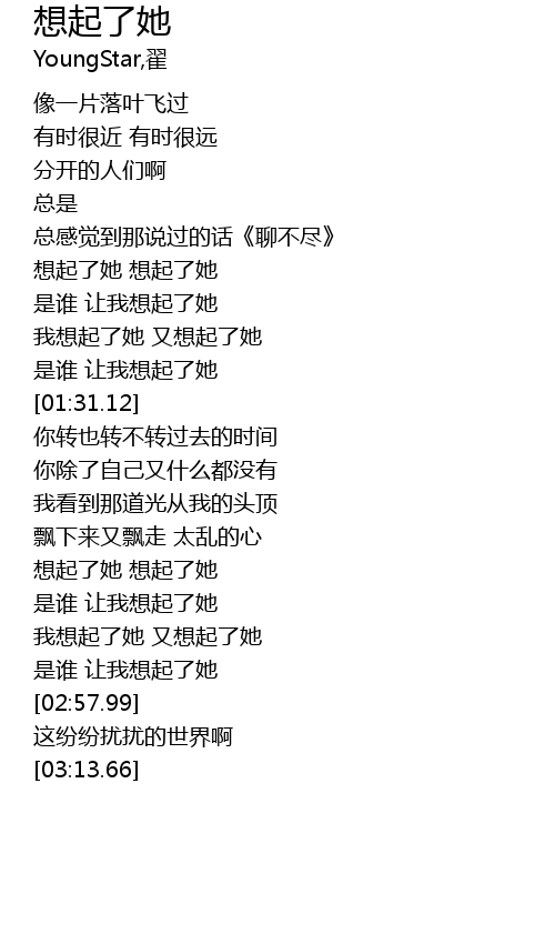 | [02:29.26] | xiǎng qǐ le tā xiǎng qǐ le tā |