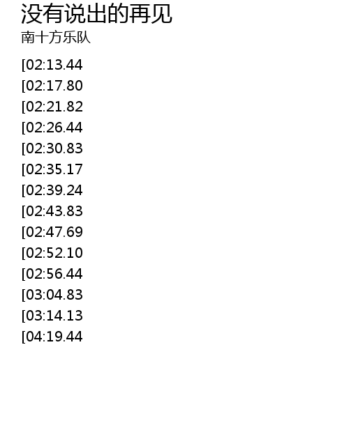 | [01:03.20][02:47.69][03:57.72] | 没有说出的再见 |