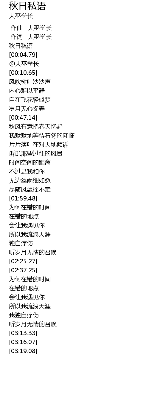 | [01:01.35] | 片片落叶在对大地倾诉 |