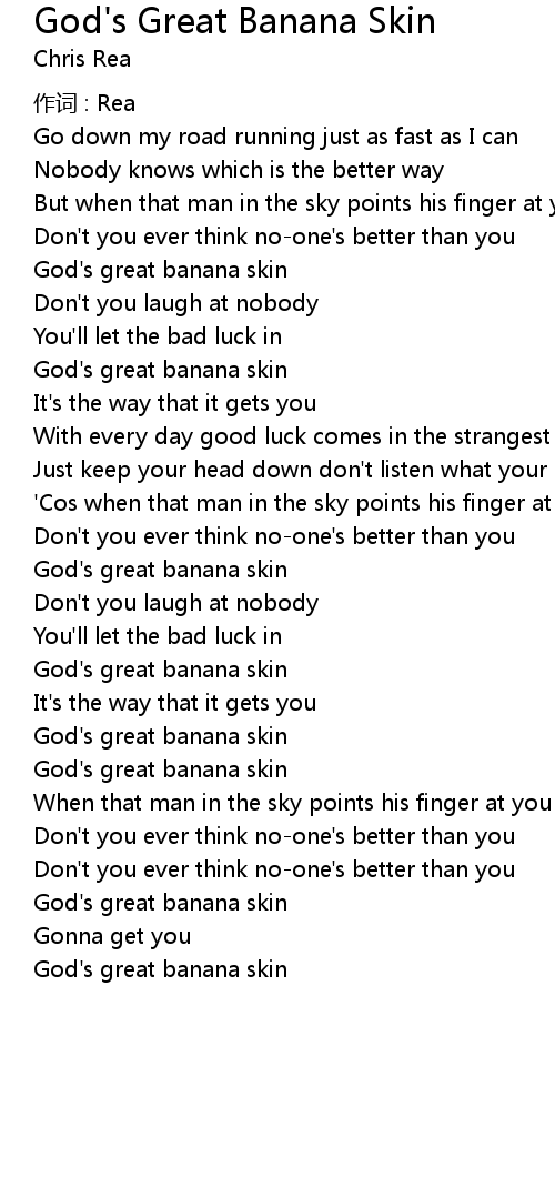 | Song | God's Great Banana Skin |