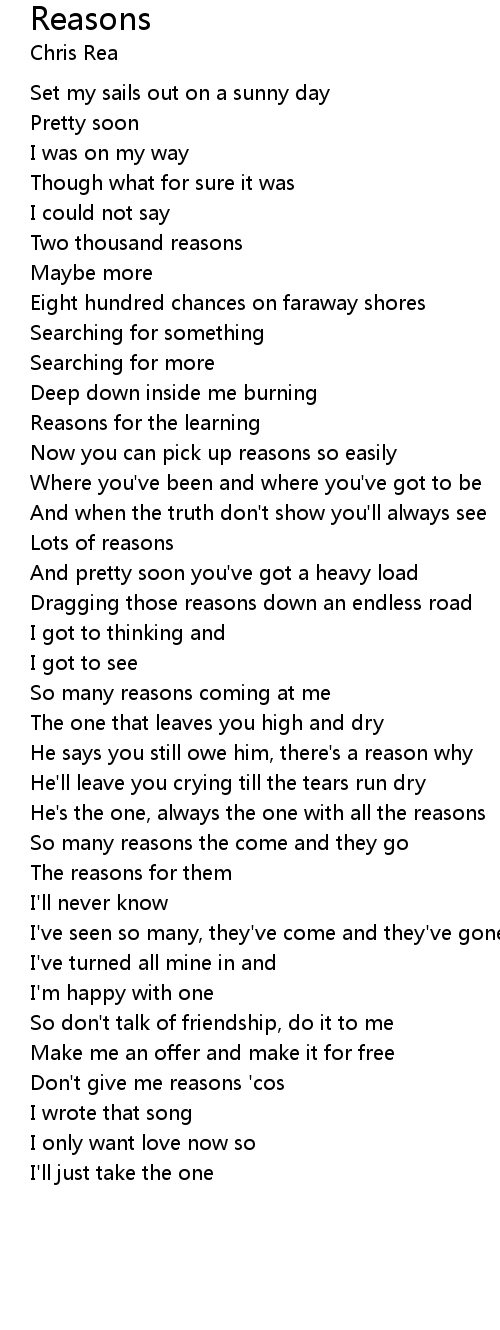 So many reasons the come and they go |