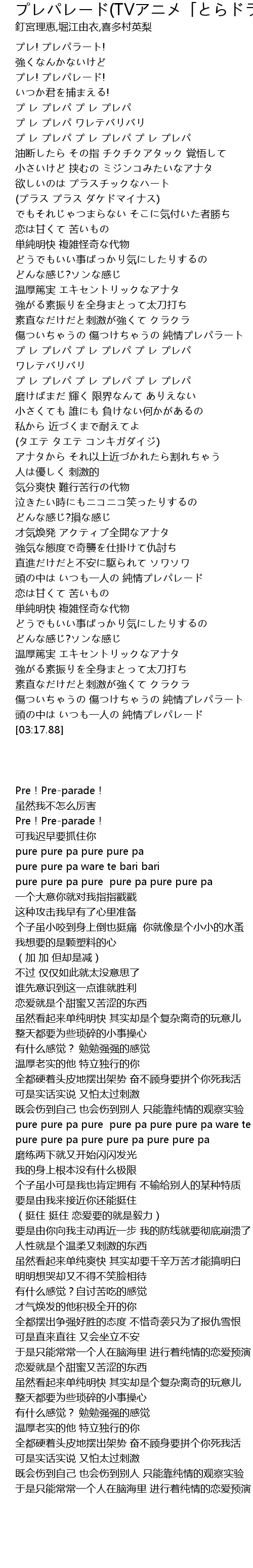 | [00:08.41] | プレ! プレパレード! |