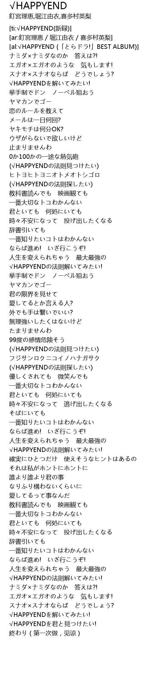 | [00:41.50] | (√HAPPYENDの法則見つけたい) |