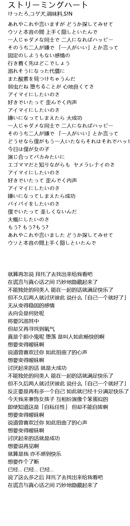| [00:05.180] | ウソと本音の間 上手く隠しといたんで |