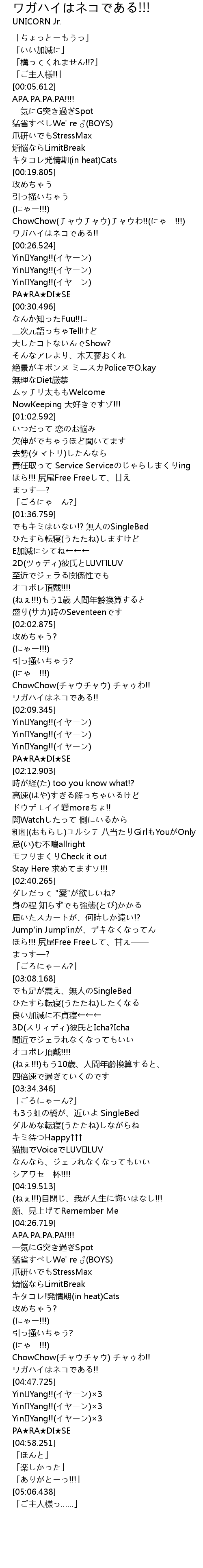 | [00:23.221] | ChowChow(チャウチャウ)チャウわ!!(にゃー!!!) |