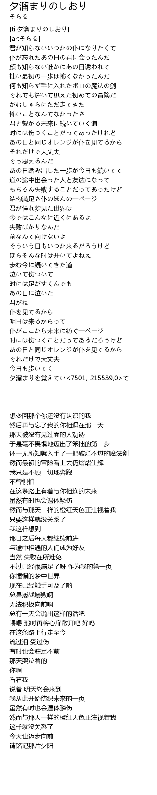 | [ti:夕溜まりのしおり] | |