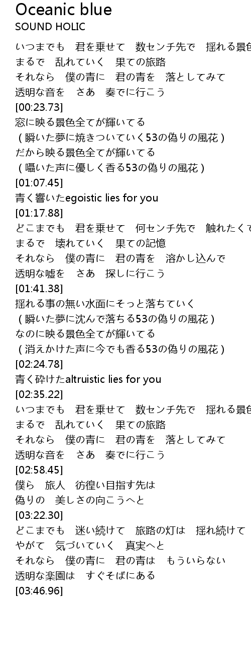 | [02:24.79] | 青く砕けたaltruistic lies for you |