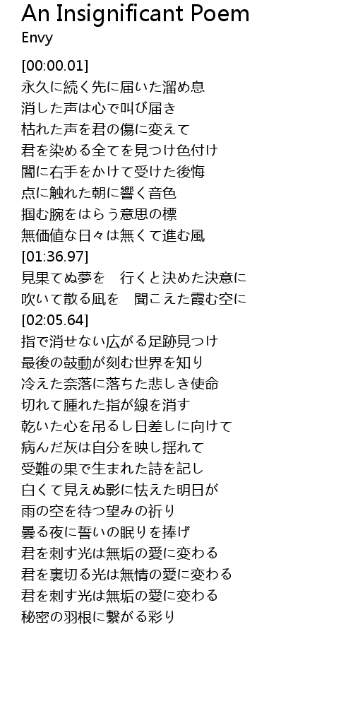 | [03:23.69] | 受難の果で生まれた詩を記し |