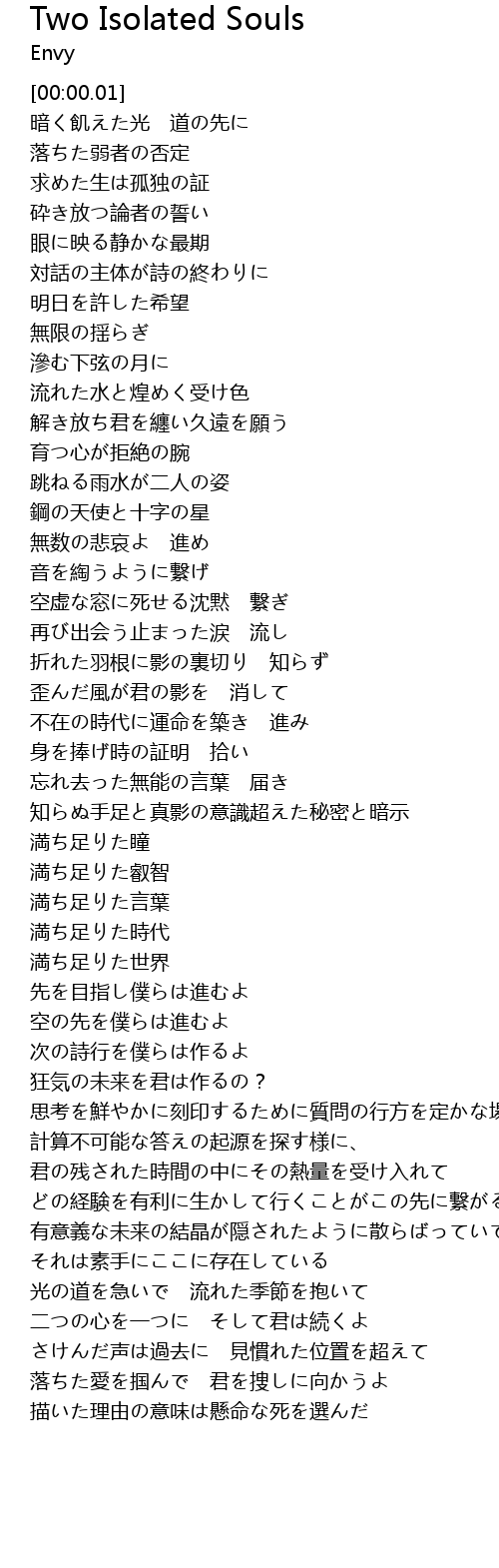 | [01:37.23] | 解き放ち君を纏い久遠を願う |