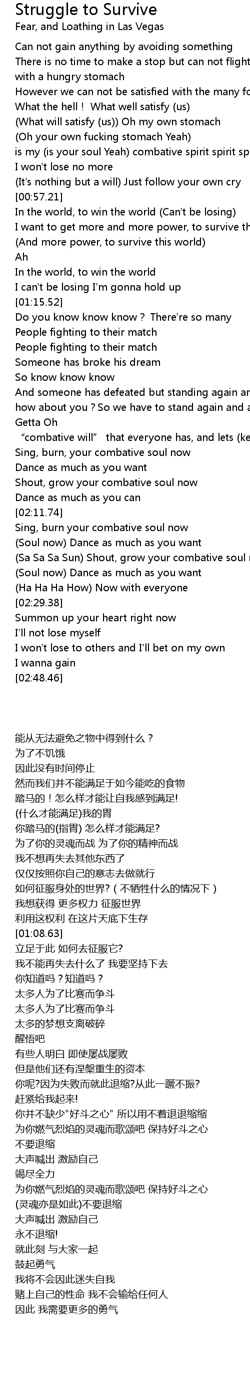 | [01:53.40] | “combative will” that everyone has, and lets (keep) fighting |